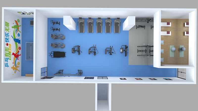 在快节奏的职场环境中,员工的身心健康日益成为企业关注的焦点。一个集锻炼、放松与社交功能于一体的企事业单位健身房,不仅能够提升员工的身体素质,还能增强团队凝聚力,促进工作效率。今天,我们就来探讨如何合理规划一个220m²的企事业单位健身房,让每一寸空间都发挥最大效用。根据空间大小,可将健身房划分为有氧区、力量训练区、自由重量区、瑜伽区及乒乓球区。
